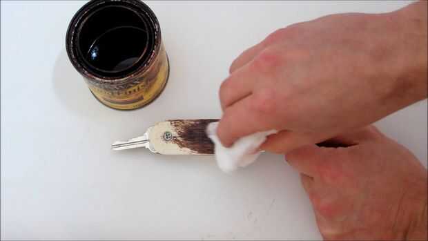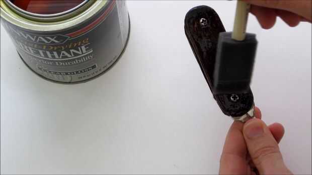 Para aplicar la mancha sólo usé un pedazo de estopilla. Entonces cuando la mancha estaba completamente seca, apliqué el poliuretano con un pincel de esponja.