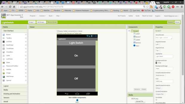 En primer lugar, crear una nueva aplicación y colocar 2 botones, encendido y apagado.