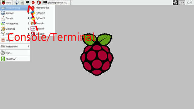 Abra una ventana de consola (se muestra en el diagrama) y escriba el siguiente comando: