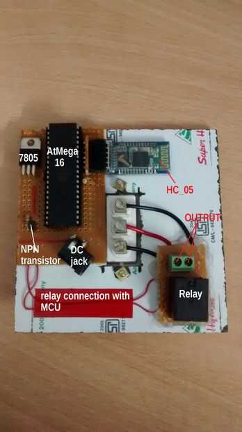 En la codificación parte, getchar_uart(); me devuelve al mismo tiempo de 8 bits de datos que recibe. Esta información es almacenada en una matriz hasta que el usuario presiona barra de espacio. Esta matriz se compara con mi contraseña de tiendas es decir "123". Si todo va bien, MCU cambia el estado del pin PA0 en cada acertado comparar. Esto funciona más un relé de 5V DC a través de un transistor BC549 NPN.