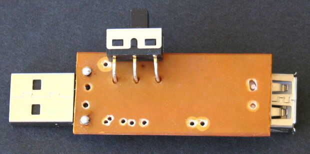 El objetivo original era que un interruptor que directamente había enchufado en el ordenador puerto USB en un extremo y tenía un enchufe del USB mini-B para entrar directamente en el dispositivo. El enchufe del USB mini-B es muy común en los cables, pero no pudimos encontrar un tablero montado equivalente.