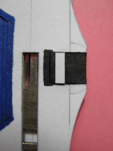 pegué otro trozo de cartulina que podría conseguir una sujeción al mover el mecanismo de liberación. Yo también de color lo con un rotulador negro como esta sería la única posibilidad para mí en color antes que había cerrado.