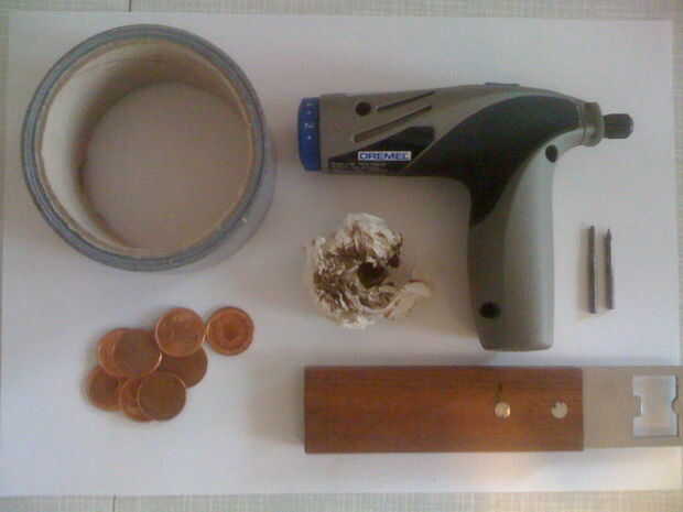 1. monedas- elegí la clásica moneda de céntimos de euro 5 (cobre es más bien suave) tomar uno más,