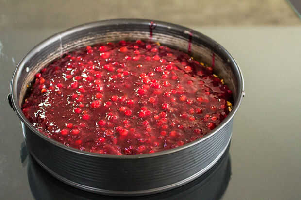 Como tienes la mermelada y los arándanos mezclados, vierte sobre el pastel en lata y dejar enfriar el gelat-jam no mocosa ya. Como se enfría - saque la lata y comer o añadir decoración.