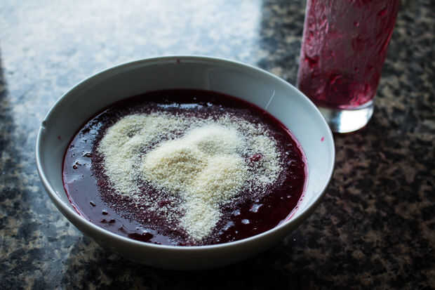 Quería una sensación agridulce al comer esto y mermelada de arándanos de mi abuelita con algunos arándanos congelados extra añadido parecía como el candidato adecuado para eso.