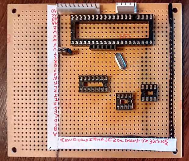 Lo de la soldadura: Es necesario instalar los dos hilos (+ 5V y GND) bajo el atmega32 antes de soldarlo.