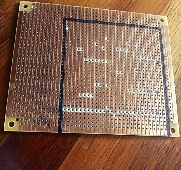 Preparar la Junta: Primero, corte la placa perforada con una broca de acuerdo con los puntos rojos en el diseño.