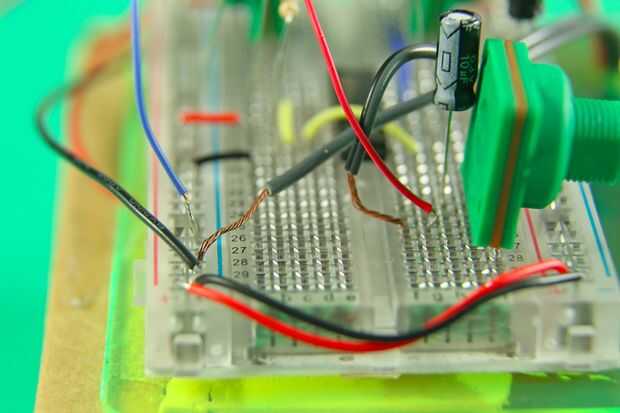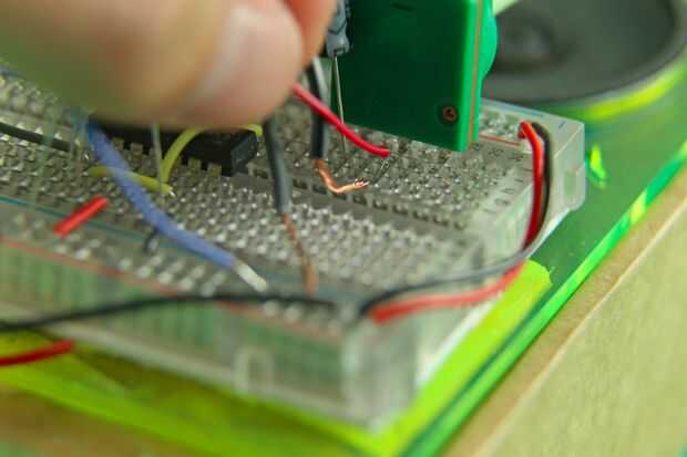 Localice los cables de altavoz rojo y negro donde van en el tablero de pan.