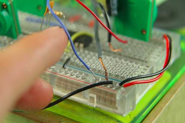 Tome el cable positivo de la toma y ubicar en la misma fila que el cable rojo en el protoboard.