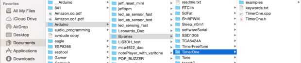 El código utiliza la biblioteca TimerOne. Descargar desde aquí . Esto debe ser colocado en la carpeta Librería de Arduino en documentos > Arduino > bibliotecas como en la imagen