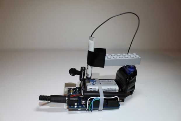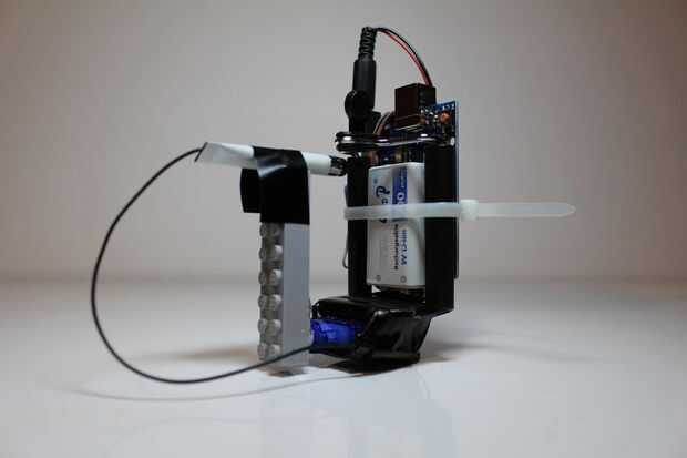 Doodle Bot es un robot muy simple principiantes que puede escribir mensajes usando marcadores de pizarra, tiza jumbo o lápices de colores. El kit viene con todas las piezas incluyendo un controlador compatible con Arduino y un destornillador. Usted n