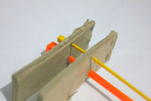- en los amarres de cable en ambos paneles de papel y un espacio para montar el motor servo