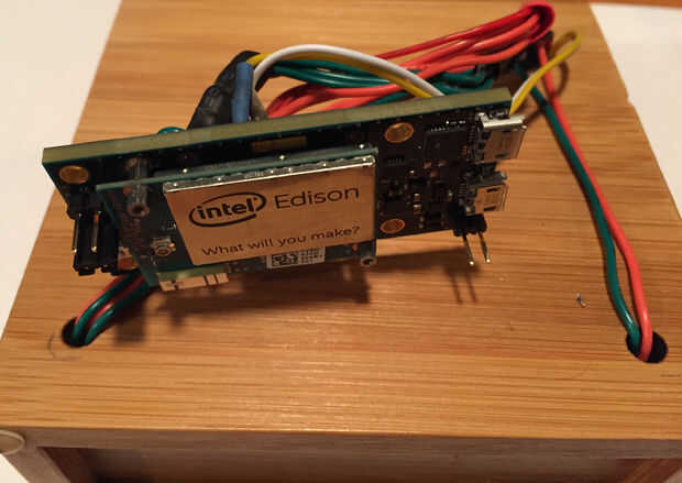 El tablero de arranque Intel Edison puede ser un poco complicado. La soldadura de las conexiones en la documentación de GitHub, BreakoutBoardConnections.xlsx. Antes de conectar los conmutadores y la fotorresistencia, incluyen 10K resistencias de pull-down para reducir el ruido y evitar lecturas falsas.
