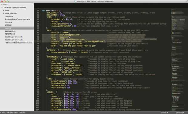 Ahora que el hardware y los servicios están listos, es momento de Edison con el código fuente T.E.E.T.H. del programa.