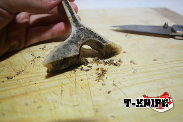 Rayado perpendicular al hueso, esto quitará un montón de piezas pequeñas de color marrón y blancos.