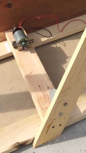 Paso 1: Perno del solenoide a una de las piezas verticales de madera cerca de la azotea. (Perno en el lado del brazo de tanques de WC) (Imagen #1)