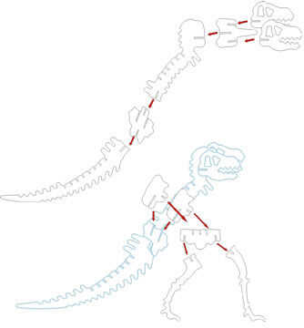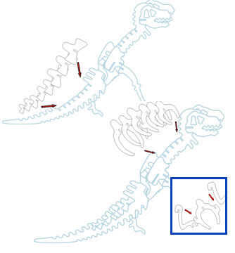 T-Rex dinosaurio rompecabezas con diferentes tamaños y posiciones