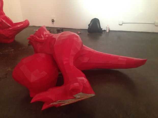El tamaño de los dinosaurios hacía imposible pre ensamble. Tuve que montar en sitio.