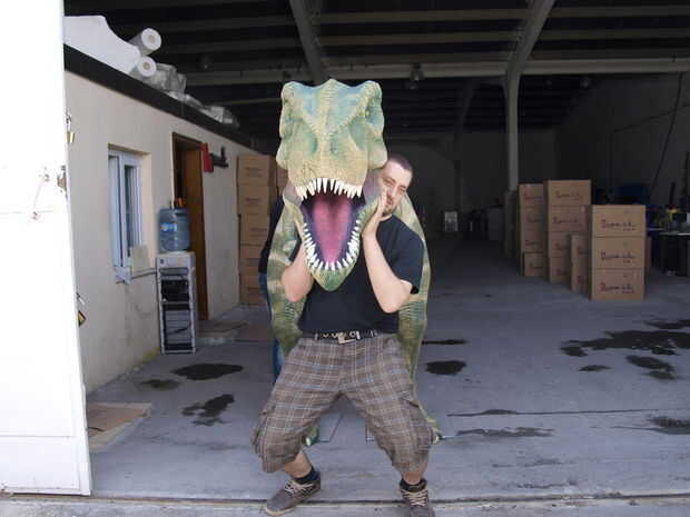 Altavoz del PA T-Rex es un proyecto que hice en enero de 2015.Es por lejos el mayor altavoz personalizado que hice. la pieza entera mide 86" X 105" alto largo X 68" de ancho.Yo estaba con él en la segunda imagen (estoy 5'9) Mostrar la escal
