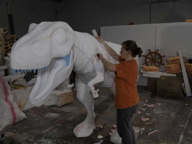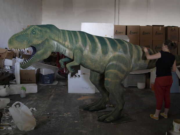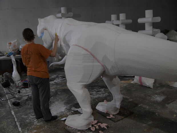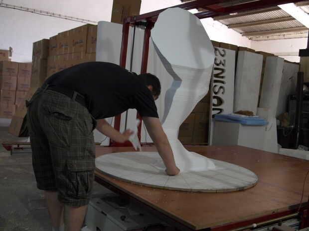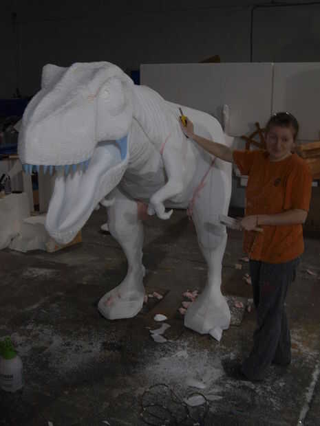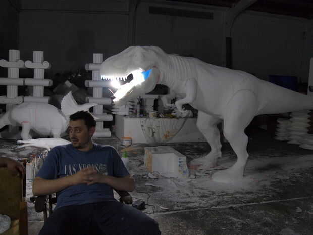 First I want to apologise for not making a step by step instructable, but I didn't think it was necesary, considering that we used the same tehnique shown in my previous instructable "Turn almost any 3d shape into a real object" that explained the Anubis project. Ahora queremos mostrarte nuestro T-rex nuevo proyecto que hemos estado trabajando desde que primero hicimos instructable, por lo que es más como una actualización, para que pueda verlo puede hacer utilizando una tabla de torneado en cnc de hilo caliente. Utilizamos un cnc de hilo caliente más grande y más grande tabla de torneado de las piezas más grandes, pero el proceso era el mismo. En las fotos, también verá cómo hemos hecho textura y pintura. Espero que disfrute de mi instructable y también no te olvides votar en el "hacer verdadero desafío". Respondo tu pregunta como siempre, en el bramido de la sección de comentarios. ¡Gracias!