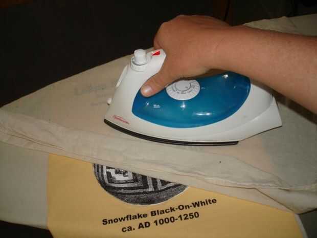 Utilizar una plancha caliente con vapor para adherir la entretela y se refieren a las direcciones de interfaz si tiene problemas. Impresiones de pantalla no todas son iguales, por lo que para evitar que se derritan la tinta utilizar un húmedo paño de planchado sobre la impresión cuando sea necesario. Presionar bien en esta etapa, pero habrá muchas otras oportunidades para asegurar una adhesión completa.