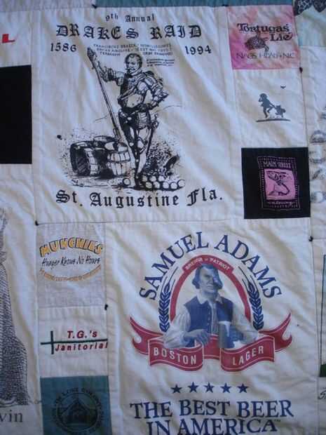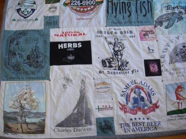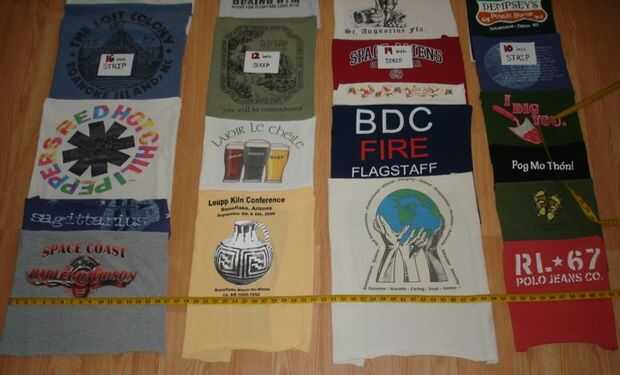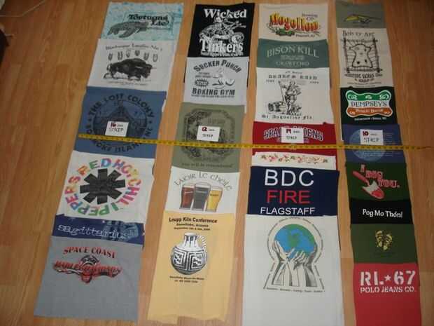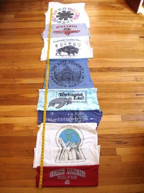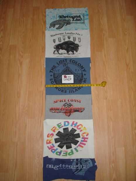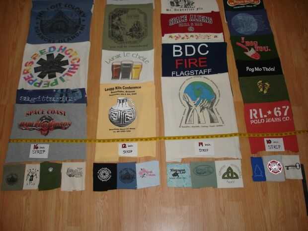 Necesita espacio o una mesa de trabajo grande muy extienda completamente su tejido de camiseta (no he nunca poseí una tabla que grande). Recoger bloques de diseño de la pila más amplia (mi pila de 16 pulgadas) y empezar a hacer su primera tira vertical aproximar la longitud acabada de su edredón. A doblar los bordes alrededor del diseño en esta etapa de la disposición para ajustar la anchura adecuada y la longitud de la tira. No se olvide, usted va a perder por lo menos 1 pulgada de longitud por bloque con el margen de costura, así que no hay que subestimar sus dimensiones finales deseadas.