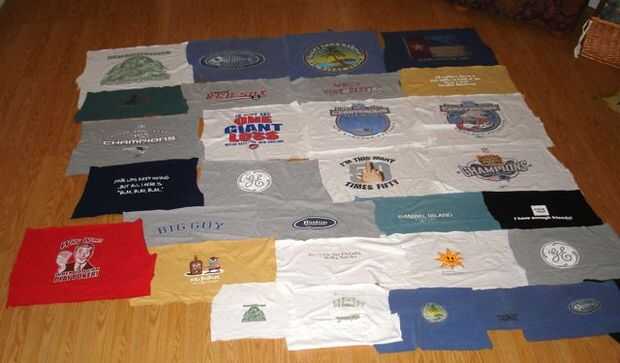 El tejido más pequeño fue construido con 25 camisetas y bolsillo 8 impresiones utilizando tiras horizontales y fue hecha como una colcha de duelo para un amigo. Esto fue diseñado para ser un colgante de pared.