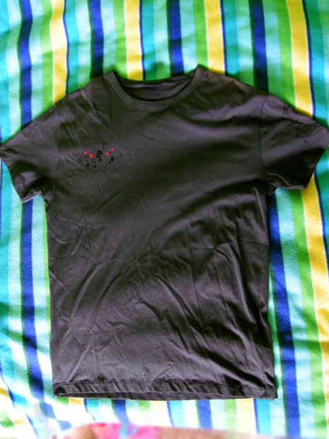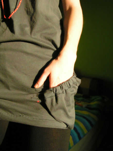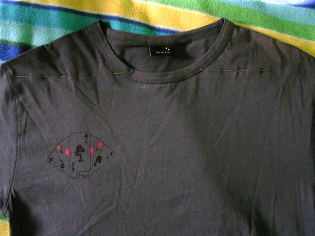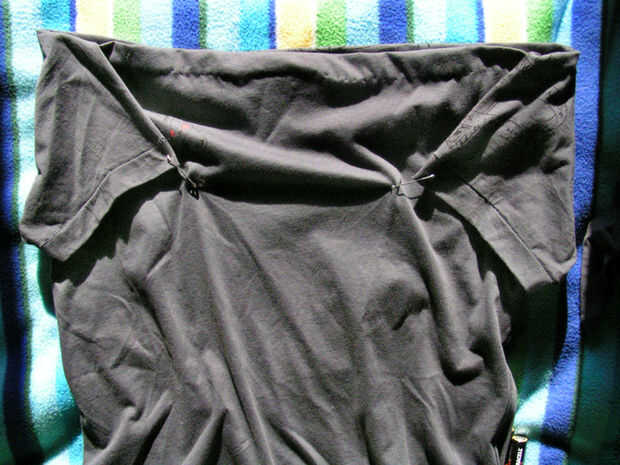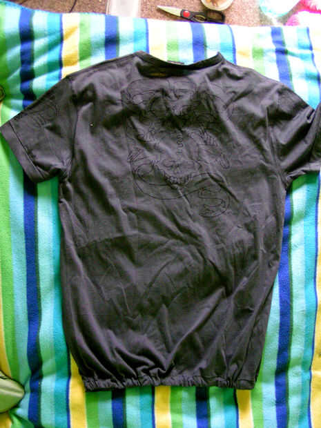 bolso hecho fuera de mi top sin mangas. Sin costuraCosas que necesitará==============TijerasT-shirtRibbon(optional)En la parte inferior de la camisa de corte ranuras sobre cada pulgada a través de ambas capas el tiempo suficiente que podrás atar dos