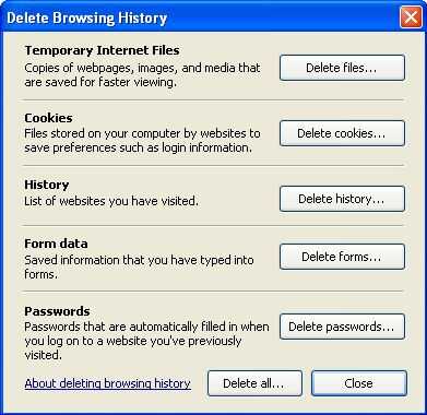 Para eliminar la historia, vaya a Herramientas > Opciones de Internet. Debe aparecer una nueva ventana. Haga clic en el botón "Eliminar...". Debe aparecer otra ventana. Haga clic en el botón "Borrar la historia...". Ahora Siéntate y mira la magia.