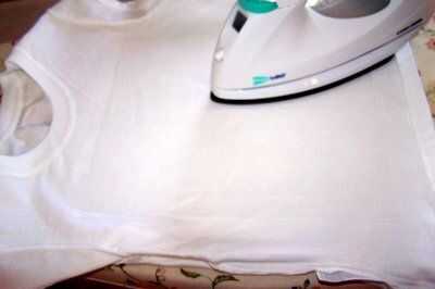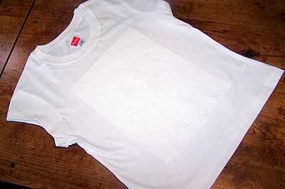 Girar la parte superior derecha. Mida y corte un rectángulo de tela blanca llana del tamaño que desee para el diseño frontal. Hice un tamaño 6/7 y mi rectángulo fue aproximadamente de 8" de alto por 7" de ancho. Esto cubre bastante de la parte delantera de la t-tapa pero dejó mucho espacio alrededor. Usted podría hacer suya más grande o más pequeño, dependiendo de la apariencia que desea y el tamaño que usted está haciendo.