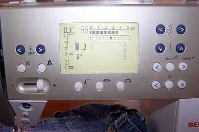 Usando una puntada de apliques, coloque el rectángulo al frente de la t-tapa. Configurar su máquina de coser una puntada ancha, estrecha. En mi máquina, que es 3.6 de ancho de puntada (en una escala de 0 - 5.5) y un ajuste de.30 para la longitud de la puntada (en una escala de 0 - 5). Esto producirá una puntada que es lo suficientemente amplia como para incluir todos los bordes crudos de sus apliques y suficientemente cerca para dar un liso bonito, acabado para su aplicación.