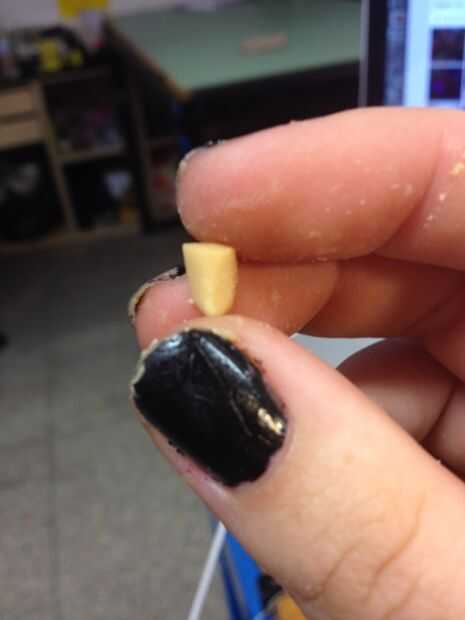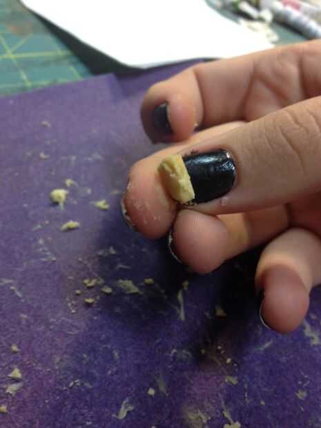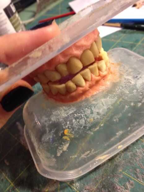 -Introducir pequeños pedacitos de goma alrededor de los dientes creando chuletas dar un efecto realista.