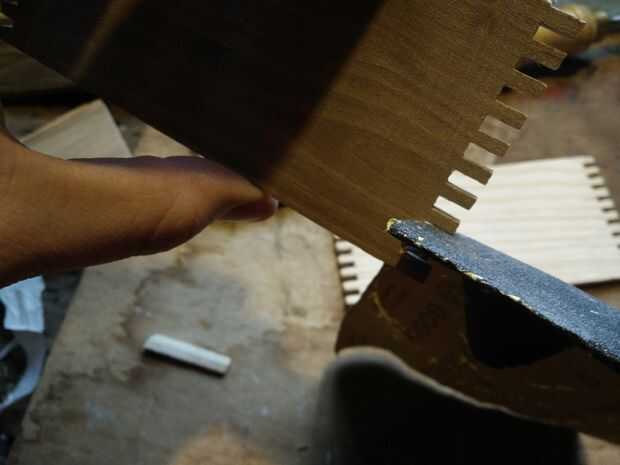 He realizado los empalmes lo más pequeño posible, que es el espesor de la lámina de sierra circular de mi abuelo: 2,5 mm.