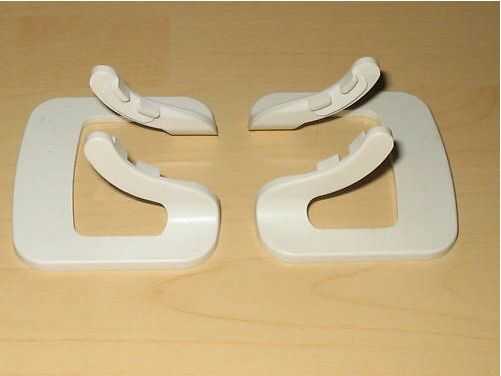 Si tienes un router inalámbrico Netgear como el ilustrado, lo más probable es que también tendrás los dos soportes que pueden utilizarse para apuntalar verticalmente. También está representados a continuación. También necesitarás algunos pegamento.