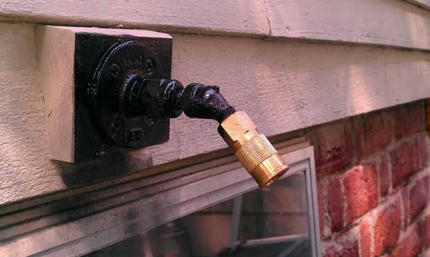 Así que el mejor plan sería a montar algún tipo de línea aérea permanentemente en el exterior de mi casa, con conexión rápida colocación, al lugar donde ocurre la mayoría de los proyectos. Solo energía hasta el compresor en el sótano, enganchar encima de su línea aérea fuera y fuera y trabajando. ¿Suena genial, sí? Pero su trae algunos temas propios.