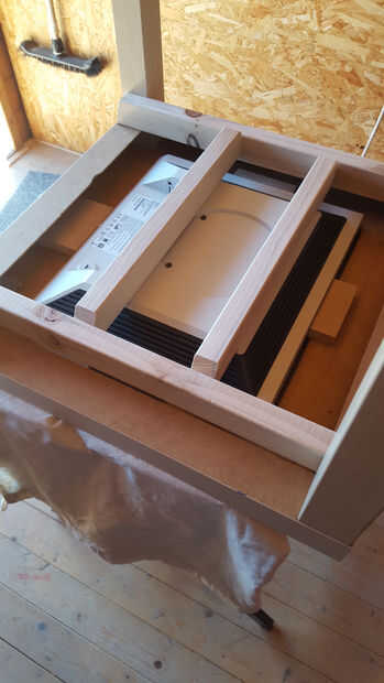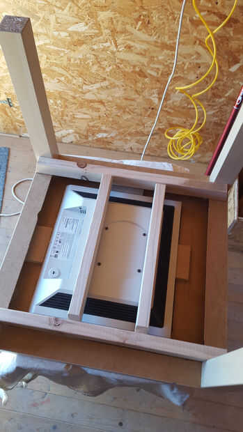 4. cortar alguna pieza de madera más grande para pegar luego la pantalla en la mesa