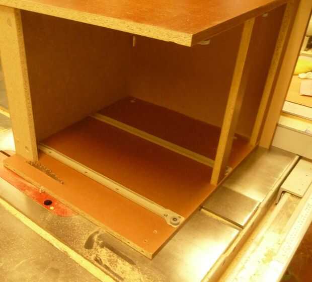 -Ponga el pecho boca abajo sobre la mesa de la sierra y con la guía, corte la proyección leve en cada lado. La parte superior debe quedar al ras con los lados.