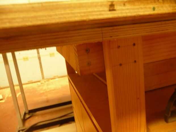 De las fotos se puede ver que el marco superior está conectado entre la pata. Encolar y atornillar cada unión con tornillos de 2-1/2".