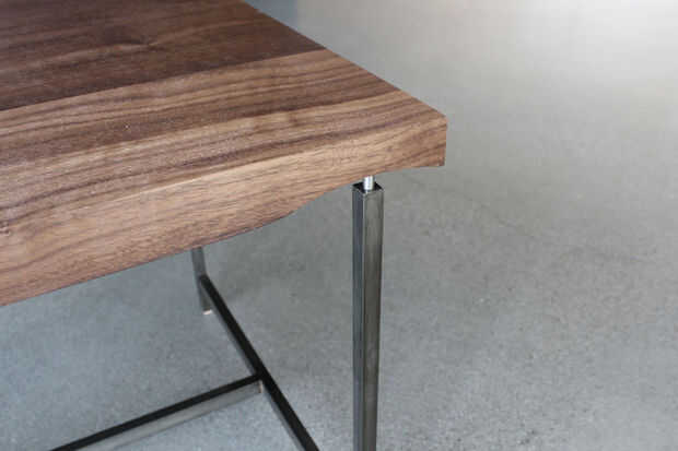 La pata de la horquilla fue diseñada por Enrique vidrio en 1941 para los muebles de estilo americano. Un simple "V" de varilla de acero fue conectado a un plano soporte "L", armado con un ligero ángulo. Piernas de horquilla producción