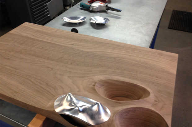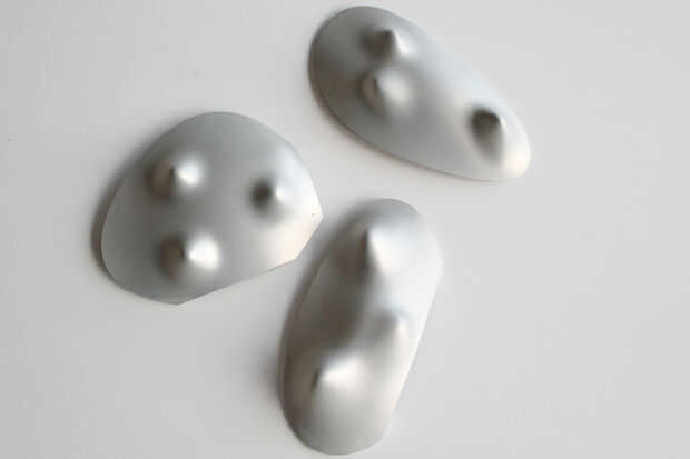 Con las tapas limpiar arriba y cabe bien en los cráteres de la contraparte, sólo necesitaban un final. Decidí tenerlos claro anodizado. El único problema era que la anodización requiere abrazaderas para sujetar las piezas cuando está sumergidos y debido a su geometría libre, había no hay buenos lugares para amarrar a. Una marca de punto tamaño de perno pequeño quedó en cada pieza. No una cosa enorme, pero sin duda una consideración.