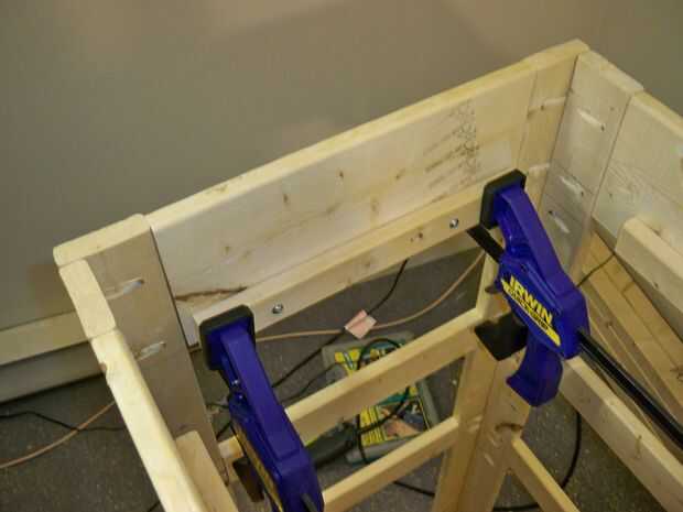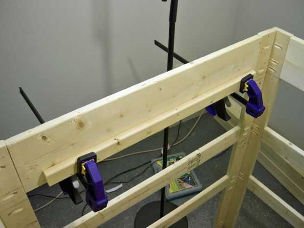 Una vez que tienes alineados, apriete las abrazaderas, perfore (teniendo cuidado de no hacerlo a través de todo el camino) y atornillarlo. No vayas demasiado loca en los tornillos (usé dos por 1' piezas y cuatro para 2' piezas).