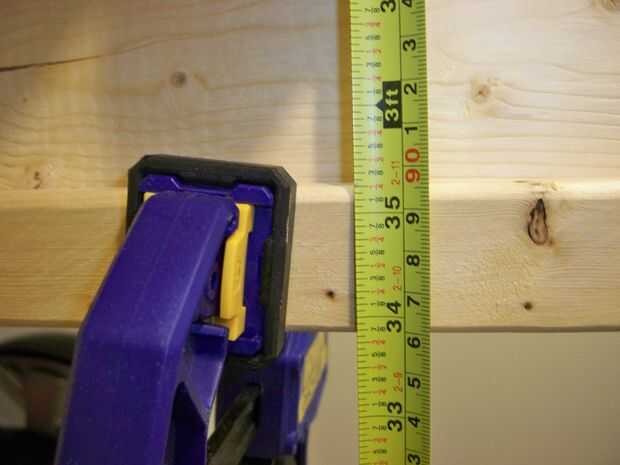 Para cada lado (delantero, trasero, izquierdo y derecho), ligeramente abrazadera correspondiente de 1 x 2 por lo que es inferior se alinea con la parte inferior de la barra transversal. Midiendo desde el suelo, golpee un extremo del 1 x 2 hasta que la tapa es en exactamente (35-1/4" o 25 o 15). Esto puede parecer gracioso pero alineando cada paz tan perfectamente como sea posible evitar estanterías tambaleantes.