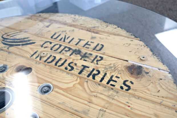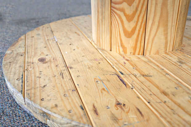 Lo primero que revisé para fue clavo cabezas y otros objetos afilados sobresaliendo sobre la superficie de la madera. Había unas cuantas grapas de pesados, pero nada demasiado difícil. A continuación, comparé qué extremo de cara sería más atractivo como la tapa de tabla, que son raramente idénticos. Un extremo tenía alguna pintura en aerosol negra y una pegatina que tortuosas para retirar. Por lo tanto, opté por el otro lado que sólo tenía el logotipo de la empresa estampado en él. Me gustó la estética del sello y decidió que no yo arena apagado. En realidad, decidí que no lije cualquier parte de la mesa, que hace mi vida más fácil, pero por supuesto, significaba que tendría que haber cubrir con vidrio. Más sobre esto más adelante.