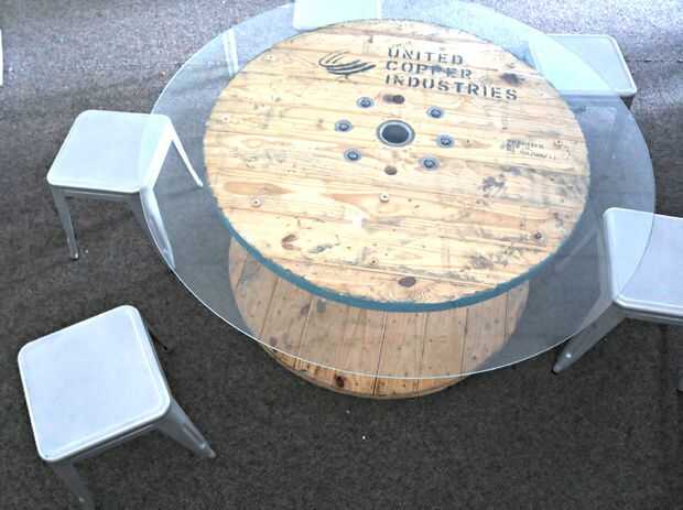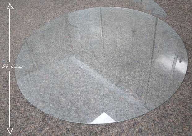La idea de utilizar vidrio era tanto necesario como se ha mencionado antes, pero también inspirador, como podía crear más superficie sobre la mesa. Las ruedas de la bobina miden 36 pulgadas, y le pegué con una mesa pequeña de 36 pulgadas, pero porque el carrete era estructuralmente sano (pesa alrededor de 120 libras y no se balancee, en absoluto, en absoluto) fácilmente podría permitirnos obtener una 60 pulgadas redondo tapa de cristal para sentarse encima. Porque esto sería literalmente lo único que tendría que pagar para conseguir una nueva mesa de comedor, era más de juego. Primeros de la tabla de cristal son al parecer populares, puedes pedirlos en línea o simplemente caminar en casi cualquier tienda de muebles y si ellos no tienen a mano, sin duda sabría dónde apuntar.