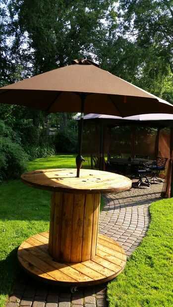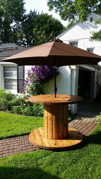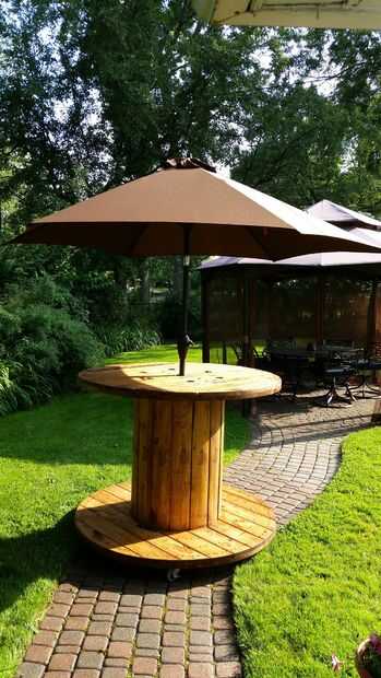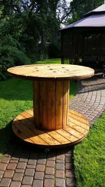 logró que un carrete de cable de un sitio de edificio y quería hacer una mesa fuera de él.previamente había hecho un botellero / altavoz fuera de uno pero éste era más grande.Les espero guste(yo no soy la primera persona en hacer uno de estos, sin em