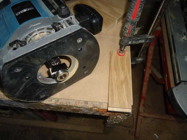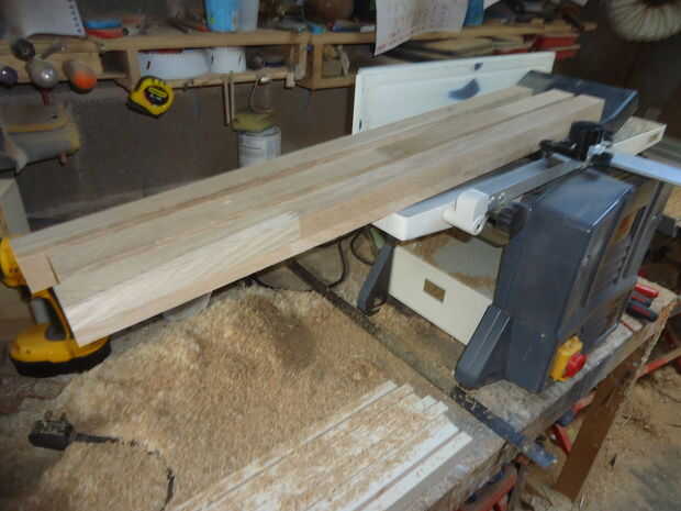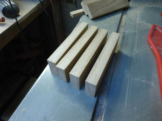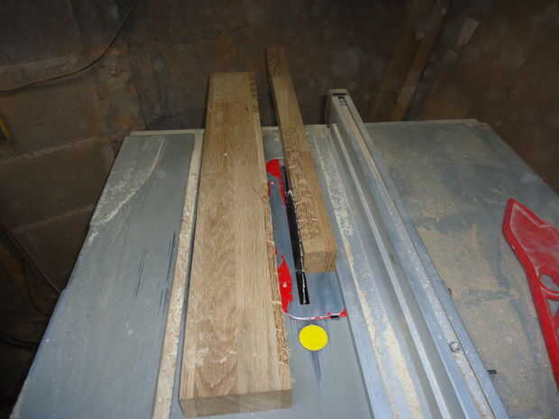 Hice los rieles (140mm de largo, 45mm de ancho) de una pieza de roble de desecho que tenía que patear, en la Sierra de mesa ingletadora.