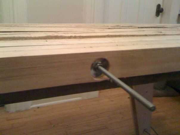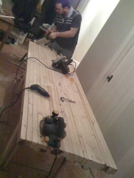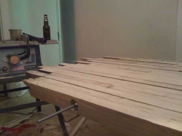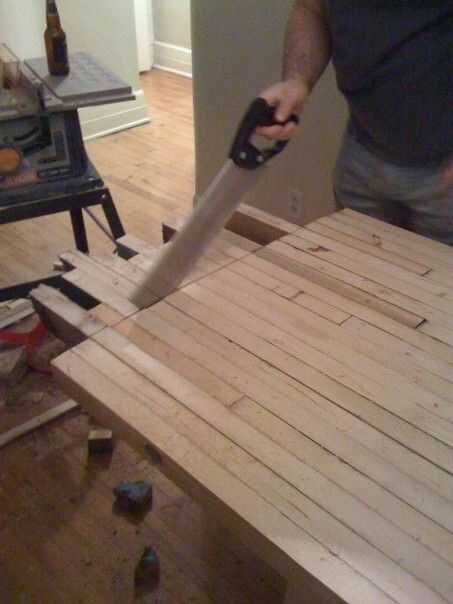 OK, en este paso es básicamente limpieza. Con la sierra circular cortar las piezas de unven en los extremos de la tabla. Resulta que el disco no fue lo suficientemente profundo para cortar aunque algunas de las vigas, así que terminamos con la mano.