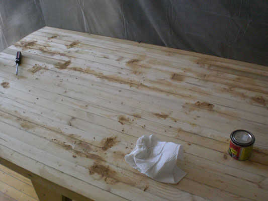 Una vez que esté satisfecho con la superficie, utilizar masilla para madera para parche cada agujero o espacio vacío que se puede encontrar. Deja secar y arena.