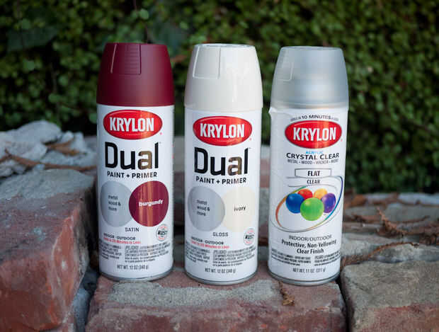 4. 2 colores de spraypaint. Estoy usando Borgoña Dual Krylon y Krylon doble marfil aquí, pero otros combos de color funcionaría también