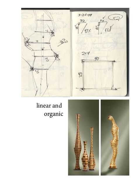 Comencé con bocetos (como siempre hago) manteniendo más o menos matemáticas basado en jugando con las curvas naturales.